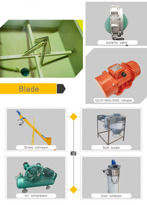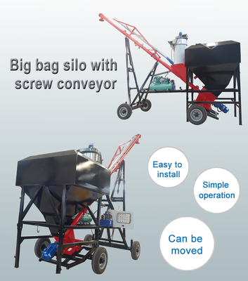 Delivered complete with cement auger, counterweight for cement auger, cone with outlet flange, top hatch, grid for cement inlet,cutter for big bags, control unit, a set of electrical wiring and connection and lifting devices -also for transportation with a forklift truck.