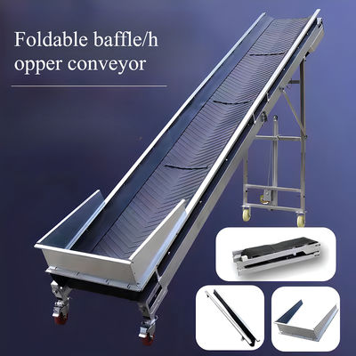 This foldable industrial inclined belt conveyor combines high efficiency, flexibility, and robustness for optimal material handling in various industrial applications.